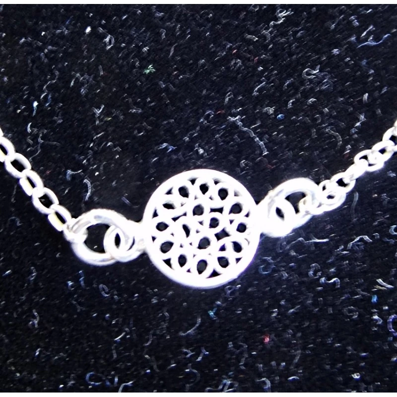 La chaine est rĂ©glable et s’ajustera Ă votre tour de poignet. Le diamĂštre du cercle est de 9 mm.