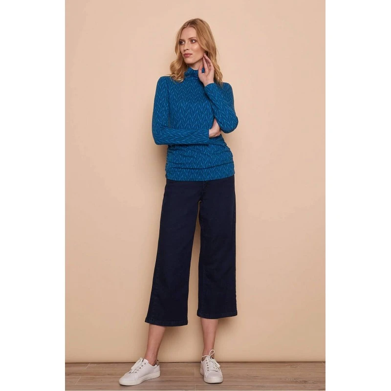 Une coupe cintrée, un col montant discret, un tissu extensible pour le confort, légÚrement froncé sur le coté.