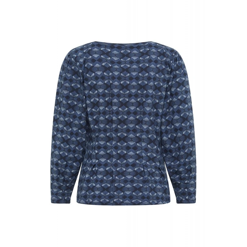 Description : manches 3/4, col rond, plis dans le dos. Coupe ajustée.