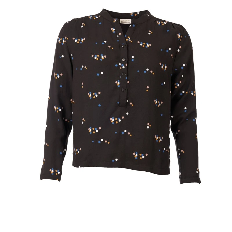Manches longues, col chemise fermé par 4 boutons, manches fermées par un bouton.