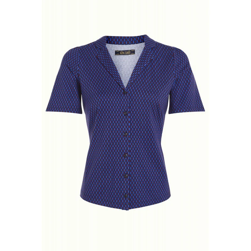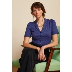 Description : fermeture boutonnée devant, col revers, manches courtes, coupe légÚrement cintrée.