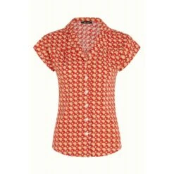 Description : manches courtes, coupe cintrée. Des fronces au-dessus de la poitrine et dans le dos. Des boutons devant pour la fermeture. Un col à revers.