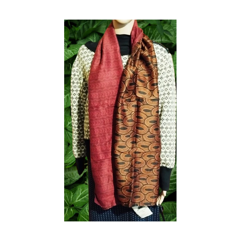Foulard Réversible Imprimé Bordeau-doré En Pure Soie – Phil De Soie