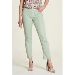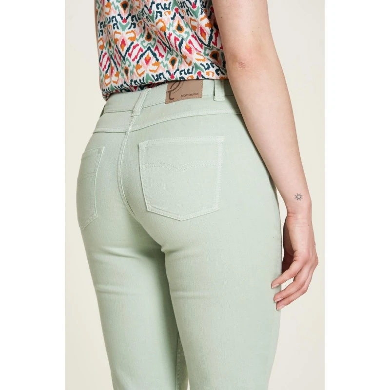 Description : taille mi haute, coupe ajustée, jambes fines (slim), style classique à 5 poches.