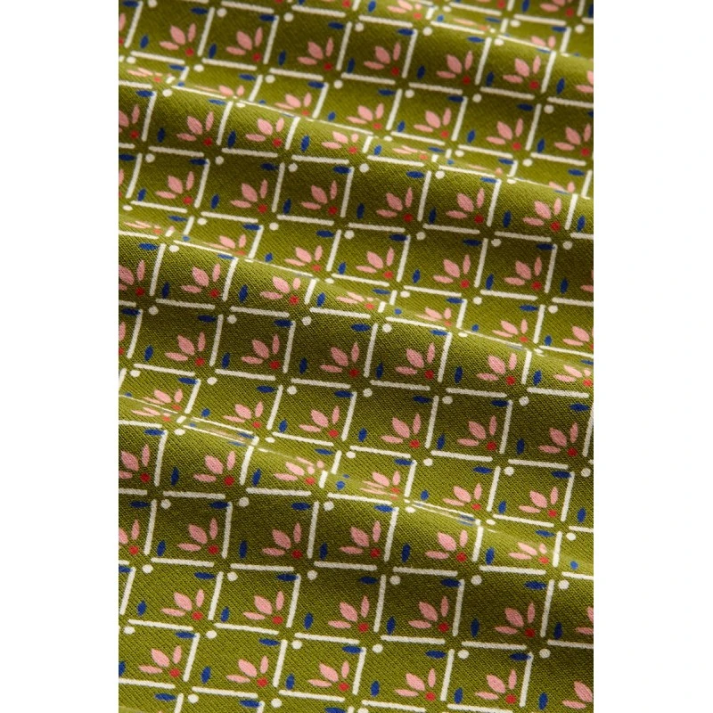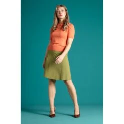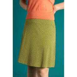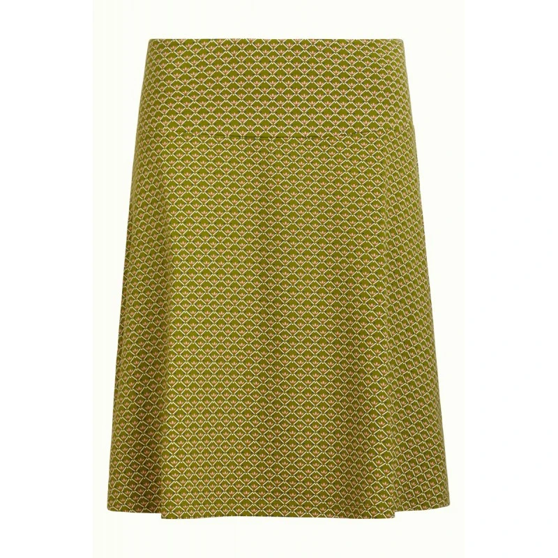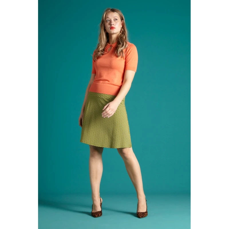 Jupe évasée avec un large bandeau à la taille, tissu strech et bel imprimé graphique.