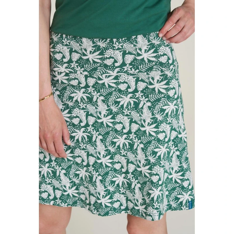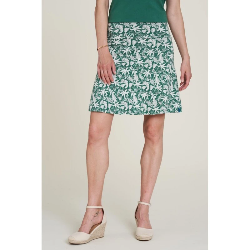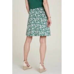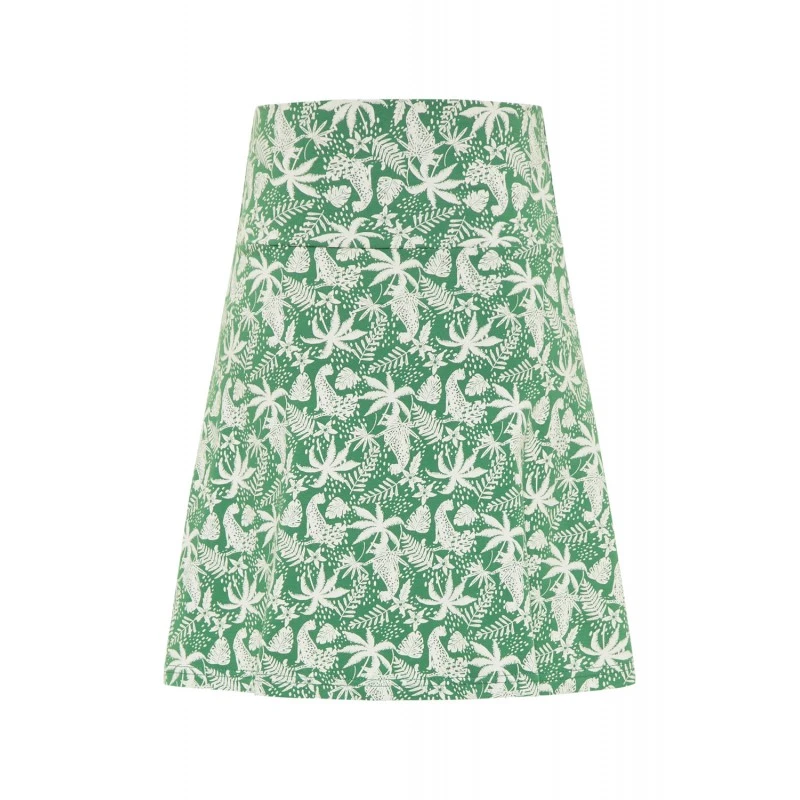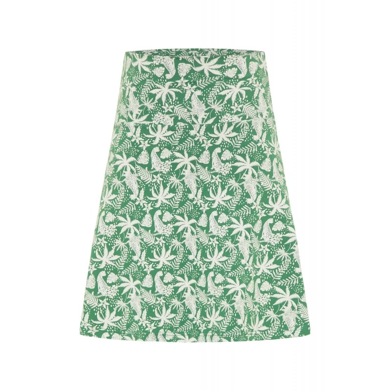 Description : jupe courte légÚrement évasée, large ceinture, ligne classique