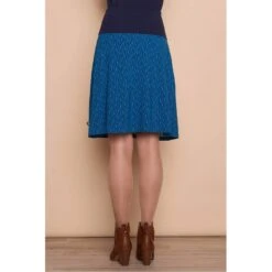 Jupe légÚrement évasée, avec une ceinture large, de couleur contrastée, confortable, et un tissu de jersey extensible, doux, de qualité biologique.