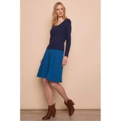 Jupe légÚrement évasée, avec une ceinture large, de couleur contrastée, confortable, et un tissu de jersey extensible, doux, de qualité biologique.