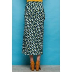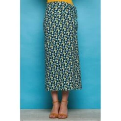 Une jupe longue coupe droite, cordon de serrage sur le cĂŽtĂ©, et une robe midi avec un cordon d’attache au cou.