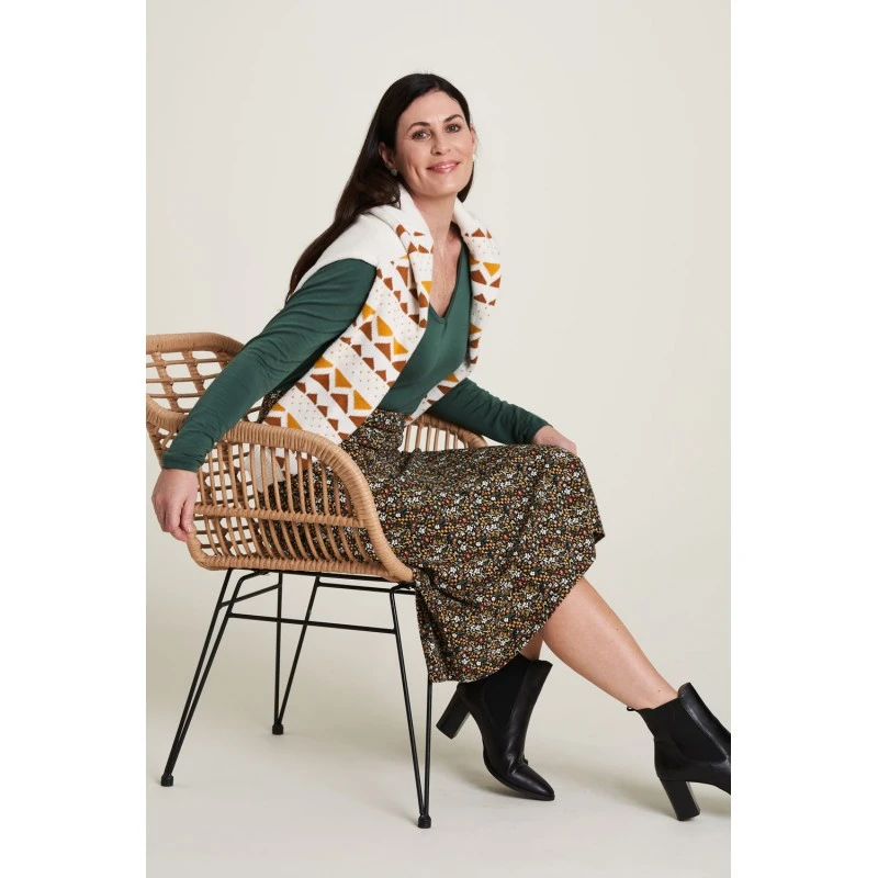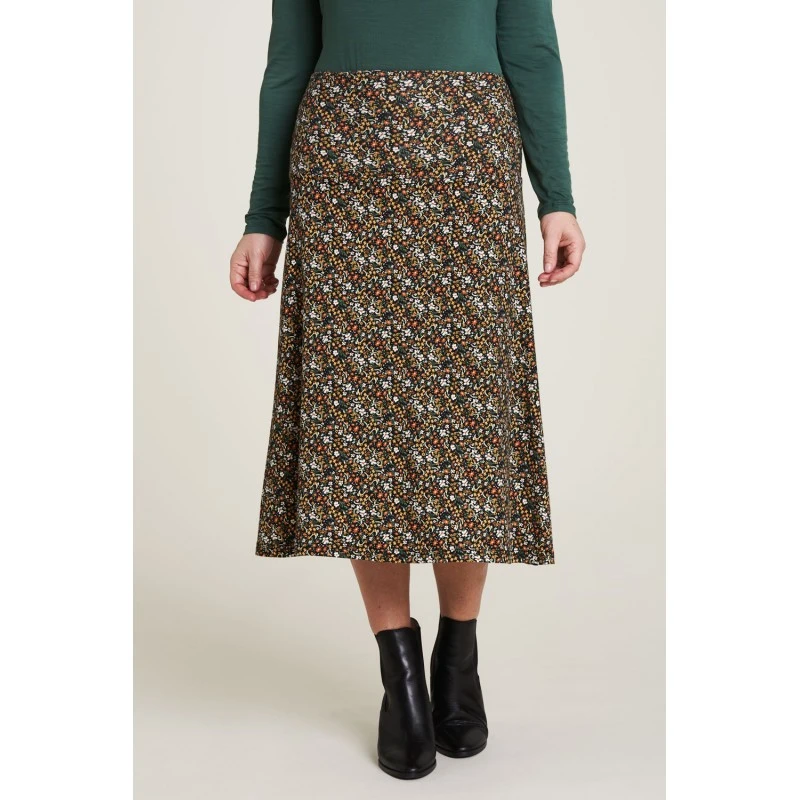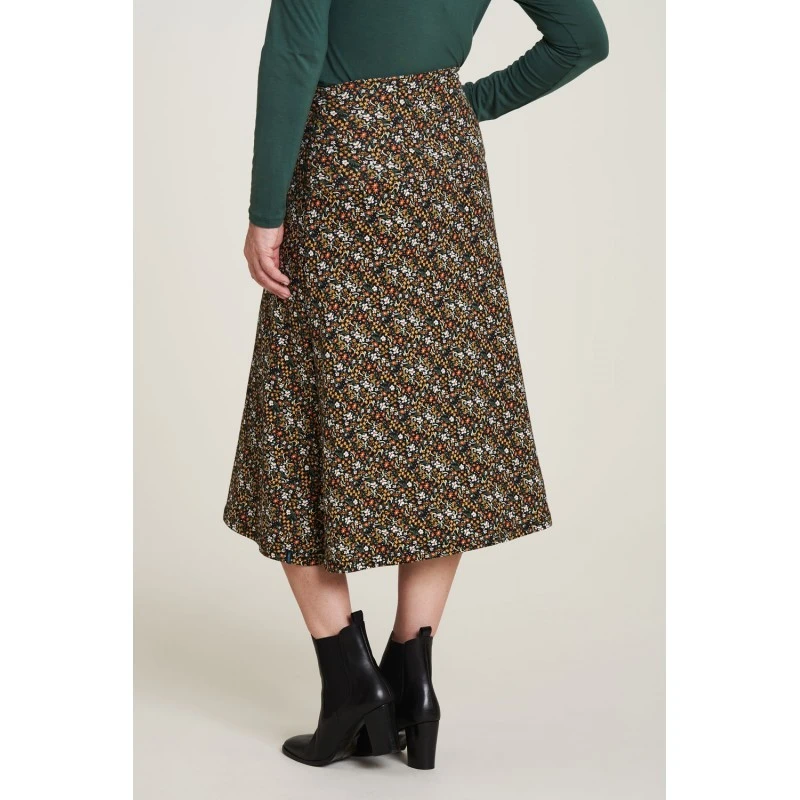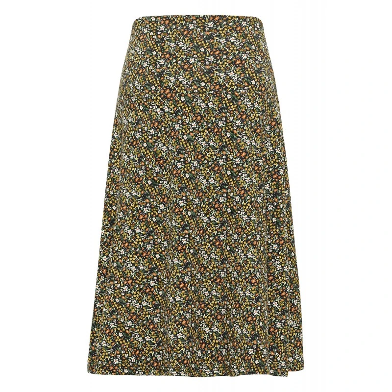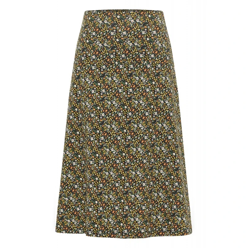 Description : taille haute, jupe mi-longue (midi), légÚrement évasée, ceinture élastique