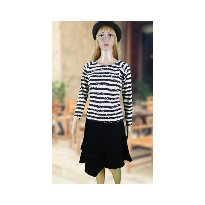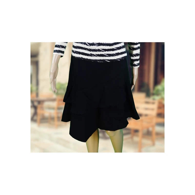 Jupe Taxi : elle arrive au genou. Un cÎté asymétrique et des volants.