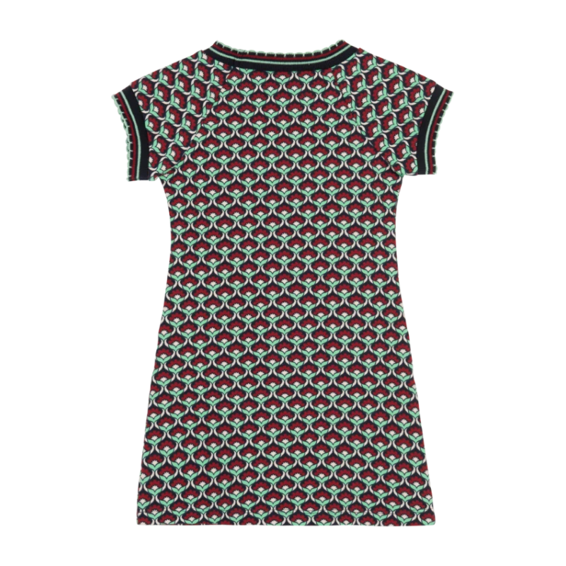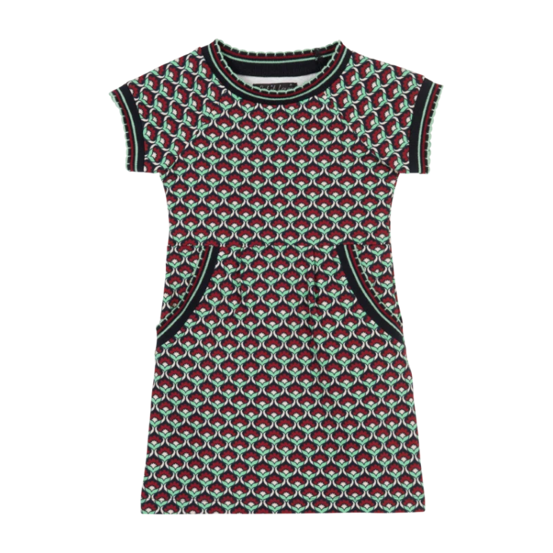 Des manches raglan, une jupe légèrement évasée, et des bordures rayées au col, sur les manches et les poches.