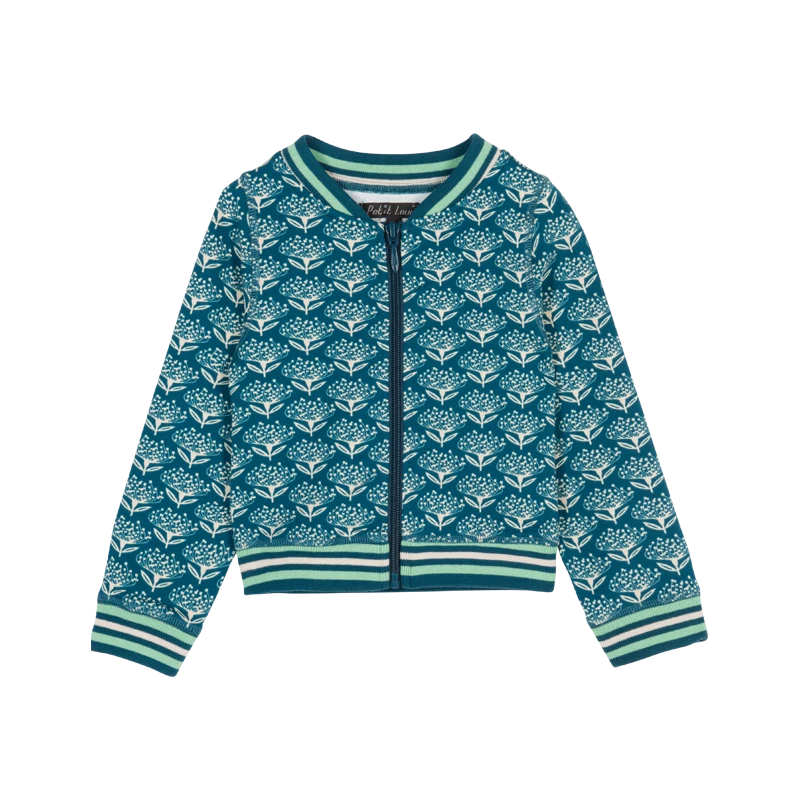 Cette veste Baseball a une fermeture Ă glissiĂšre, et l’encolure, la taille et les manches se terminent par des rayures.