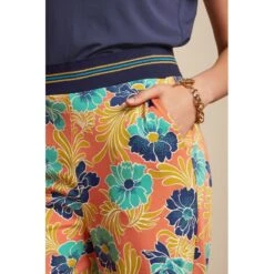Description : pantalon large, jambes droites. Des poches latérales, un large bandeau élastiqué à la taille.