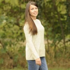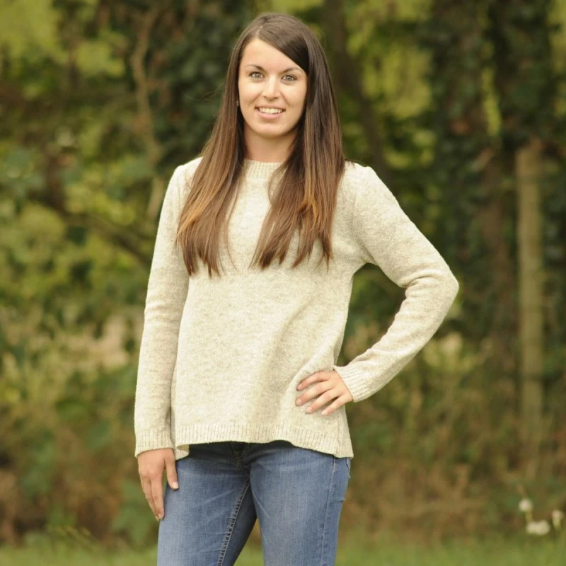 Pull femme maille de blé trÚs fine, encolure col rond, 100% LAINE.