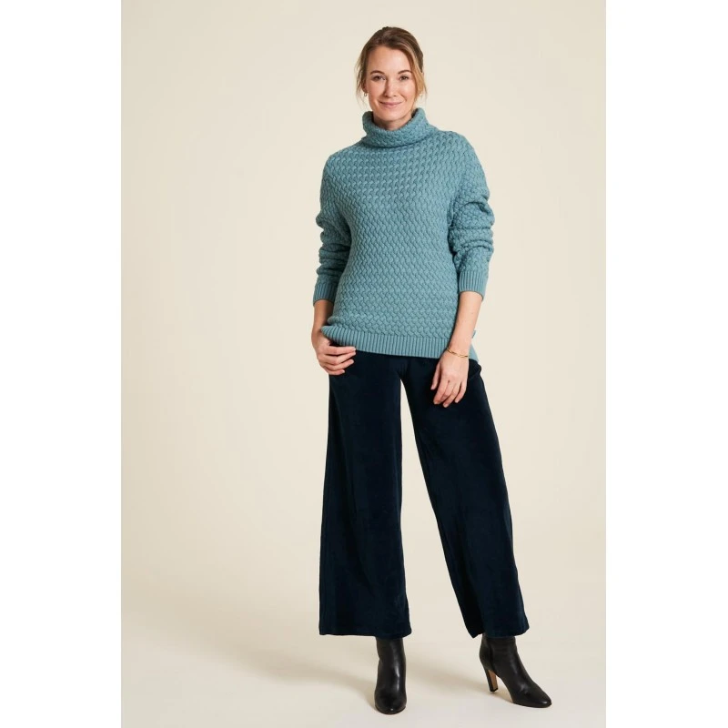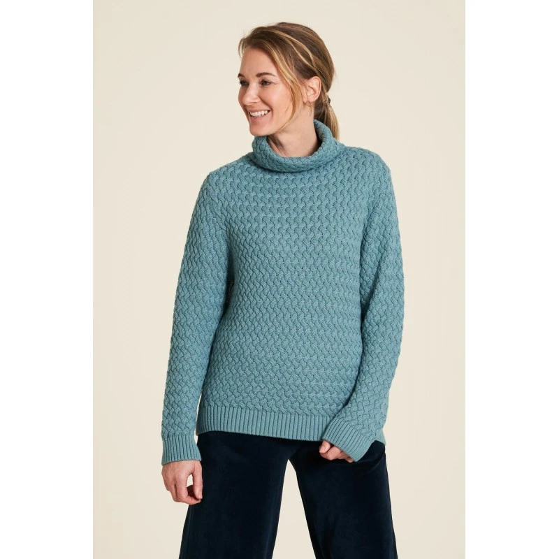 Description : col roulé rabattable, coupe ample.