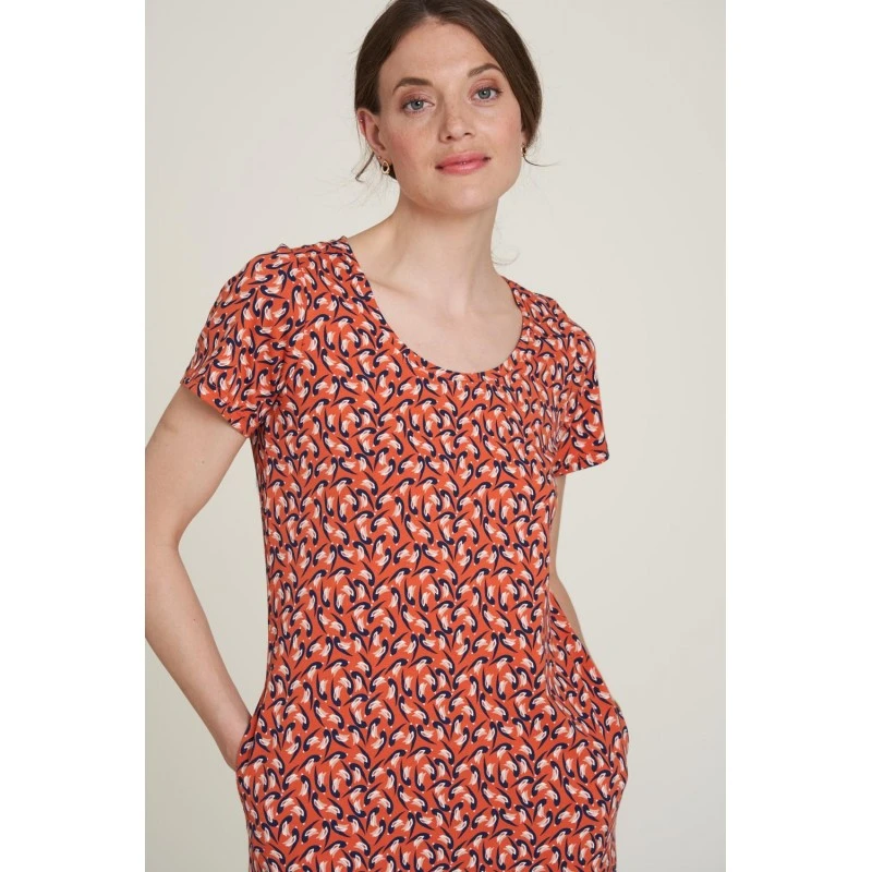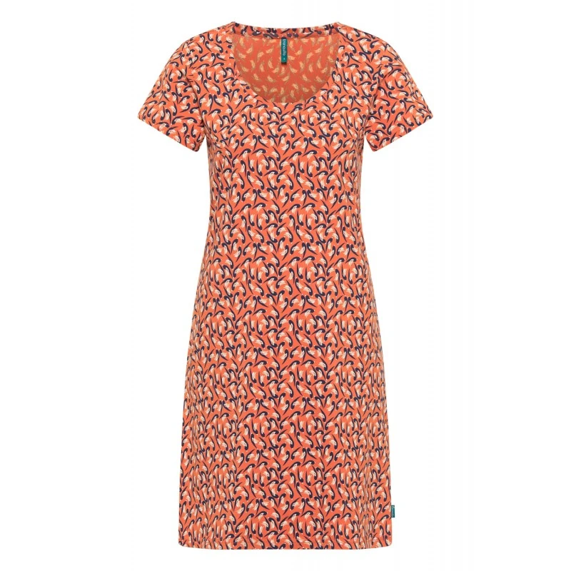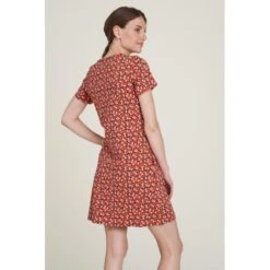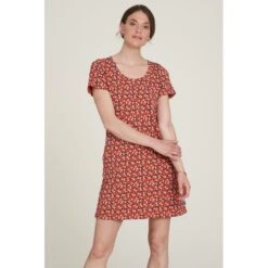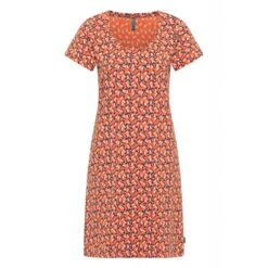 Description : Robe courte, coupe légÚrement évasée, col arrondi, manches courtes.