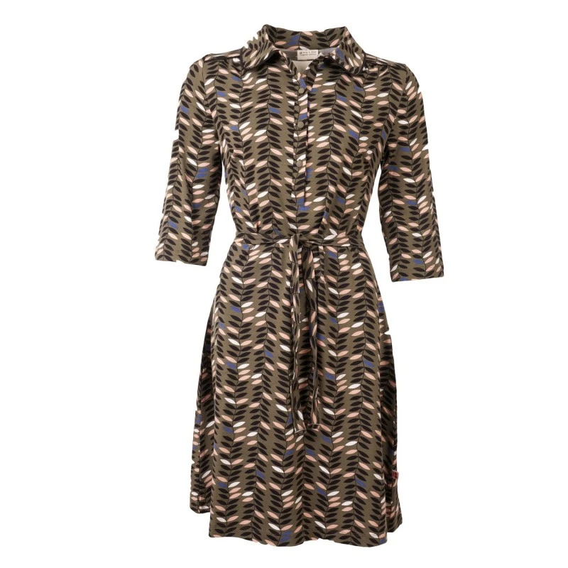 Une ceinture en tissu amovible, des manches 3/4 et un bas légÚrement évasé complÚtent le style de cette robe fluide et élégante.