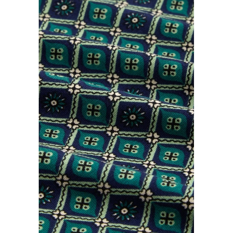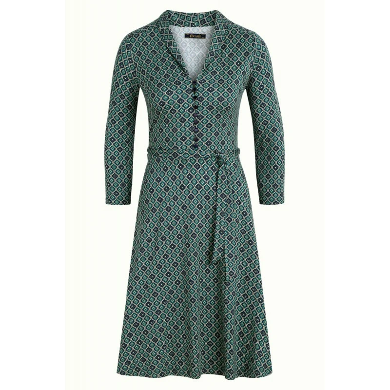 Une ceinture à nouer, un tissu en jersey stretch pour le confort. Un imprimé graphique doux.