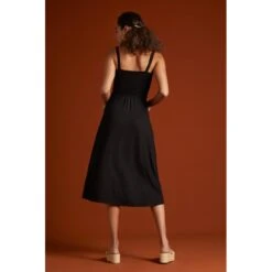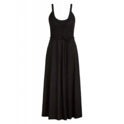 Description : midi (longueur sous le genou) à bretelles fines, une ceinture à nouer, jupe évasée, un tissu en jersey strech pour le confort.