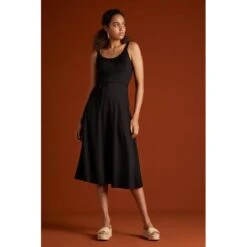 Description : midi (longueur sous le genou) à bretelles fines, une ceinture à nouer, jupe évasée, un tissu en jersey strech pour le confort.
