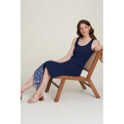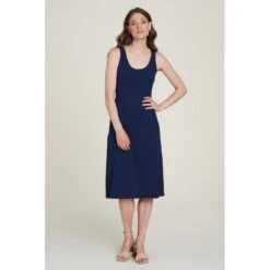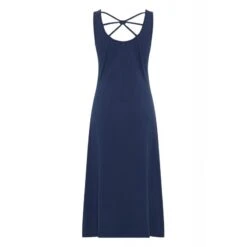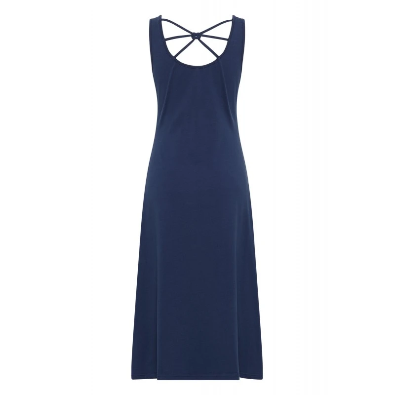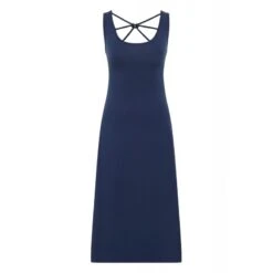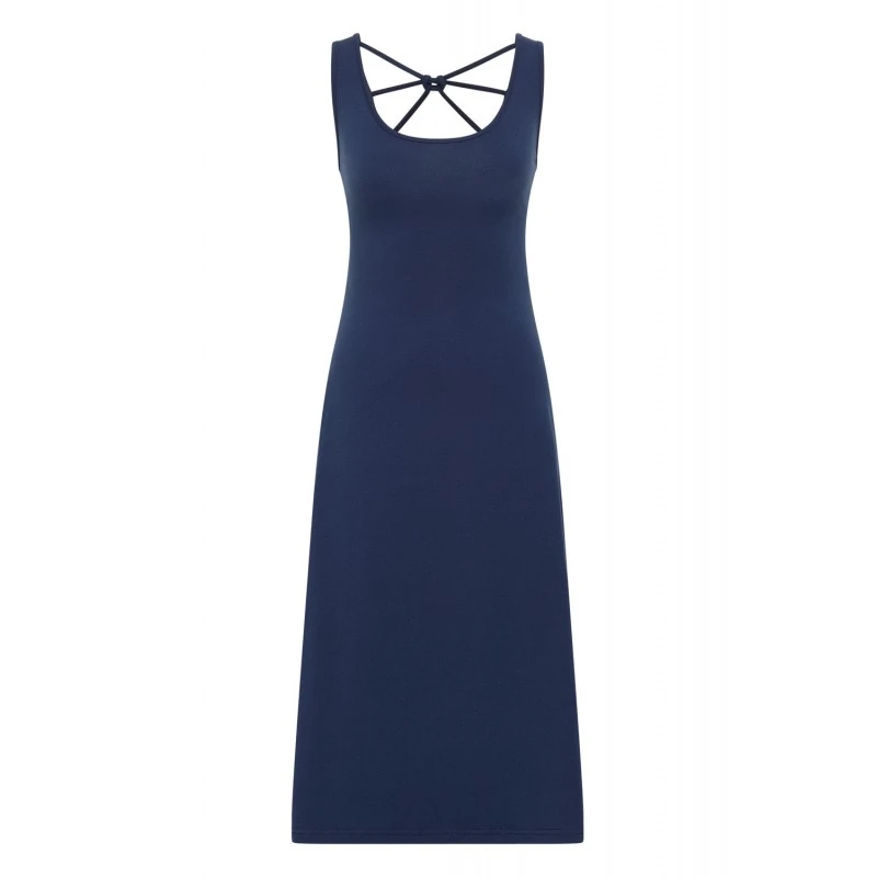 Description : robe trapĂšze, col en V Ă l’avant, sans manches. au dos, un cordon dĂ©coratif.