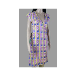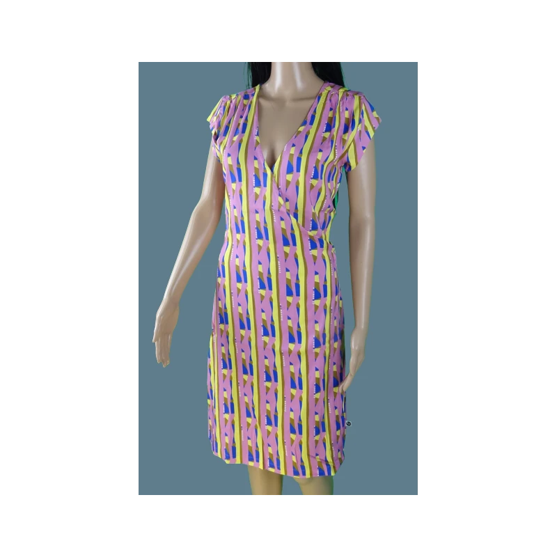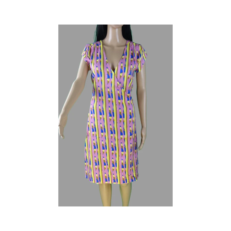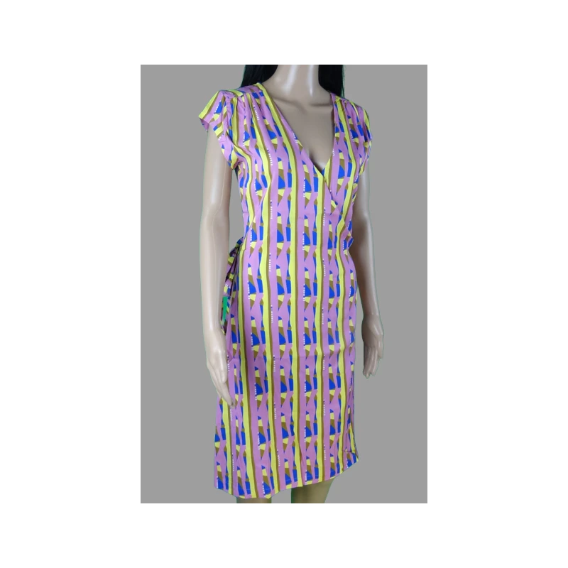 Description : manches courtes, col croisé et robe fermée à la taille par une ceinture intégrée, style portefeuille