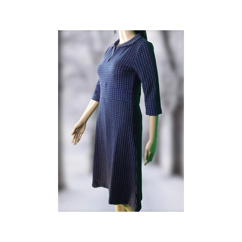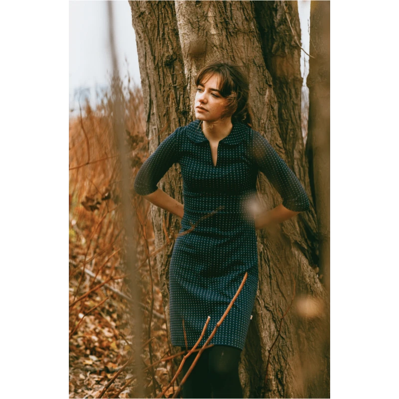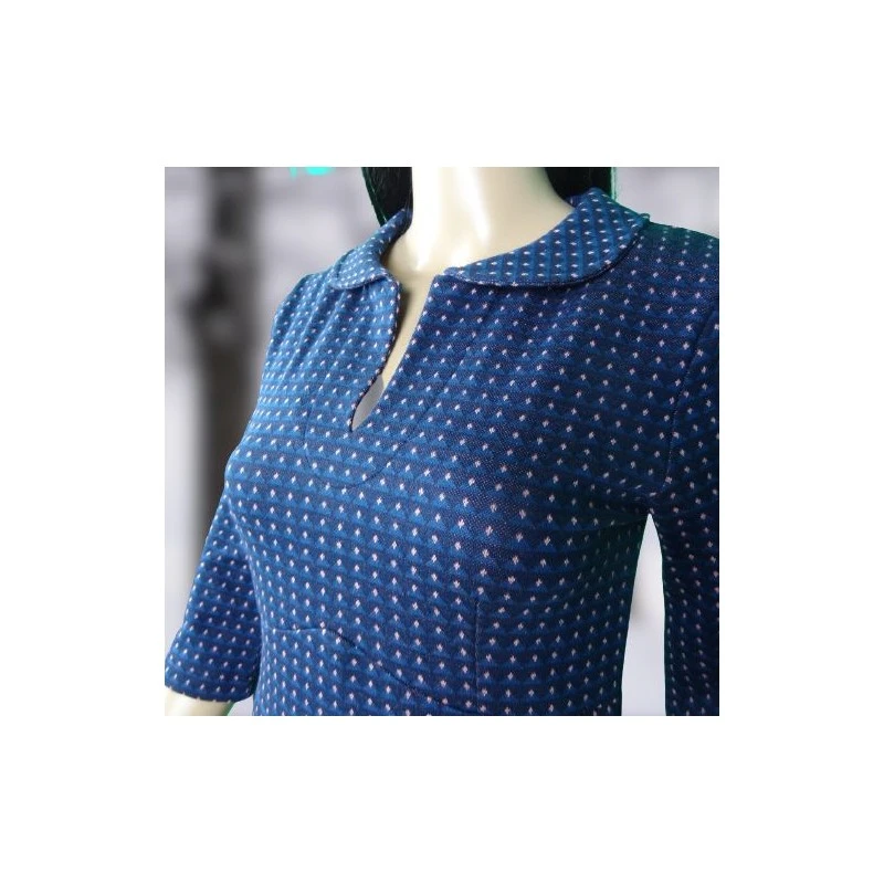 manches 3/4, col rond avec ouverture en V, une silhouette Ă l’ancienne avec une taille accentuĂ©e.