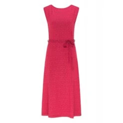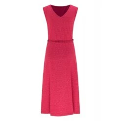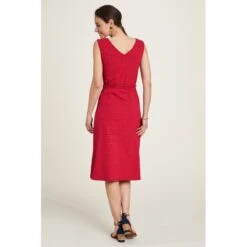 Description : robe mi longue (au mollet), sans manche, décolleté en V au dos, ceinture à la taille.