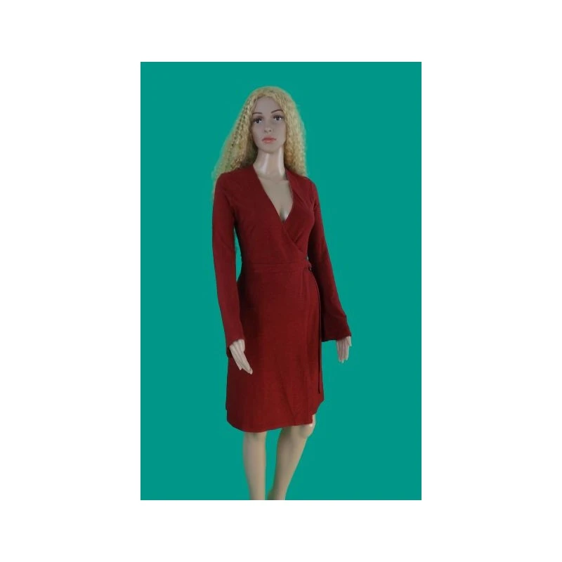 Robe Vava : une laniÚre assortie pour la taille à fermer sur le cÎté avec une boucle, des manches longues évasées, un col en V.