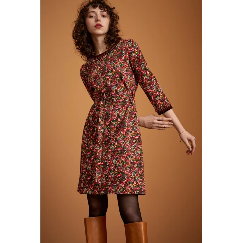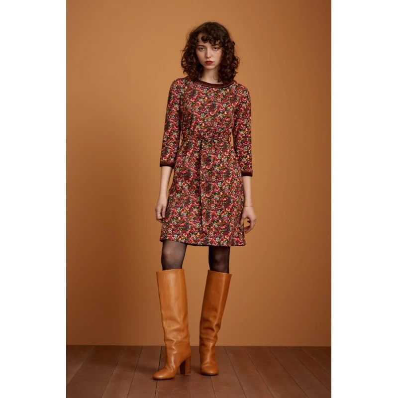 Manches 3/4, col arrondi et ceinture assortie.