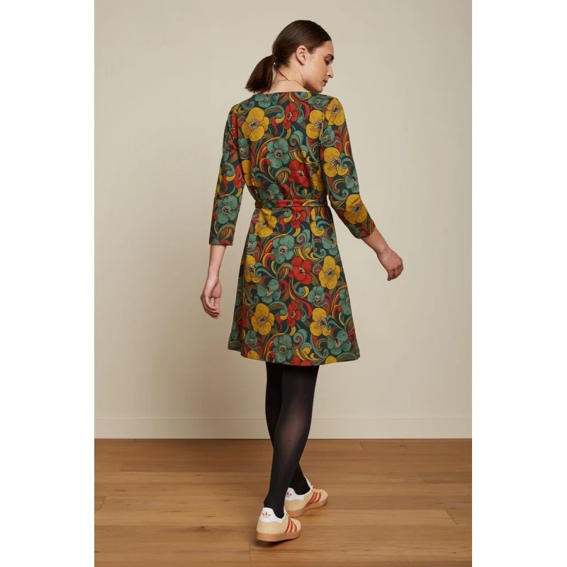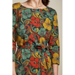 Description : ceinture Ă nouer, col rond, manches 3/4.