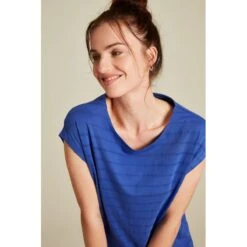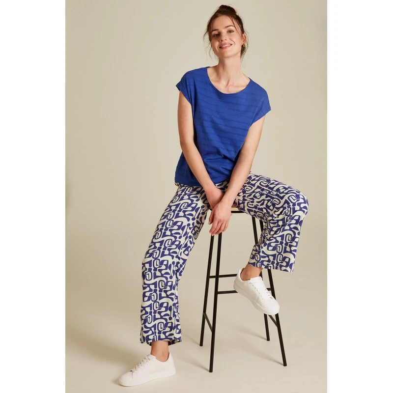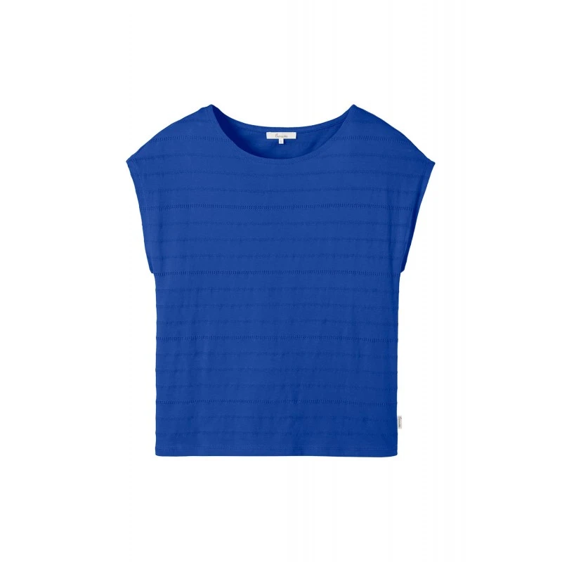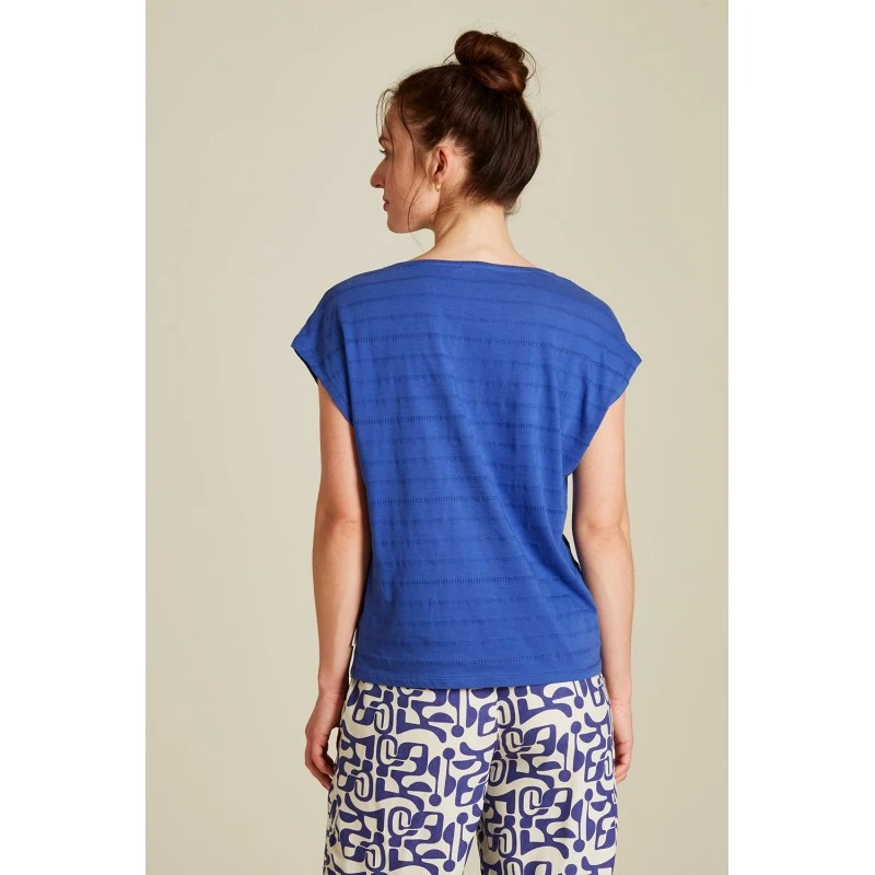 Description : col bateau, coupe ample, tissu à motifs ajourés, manches courtes