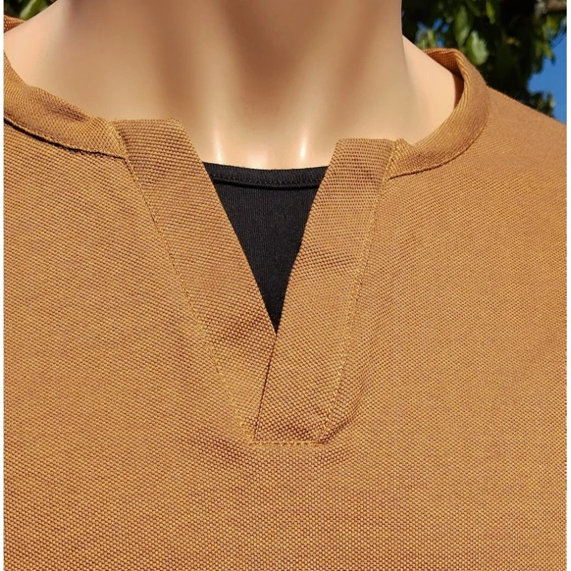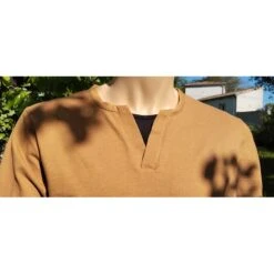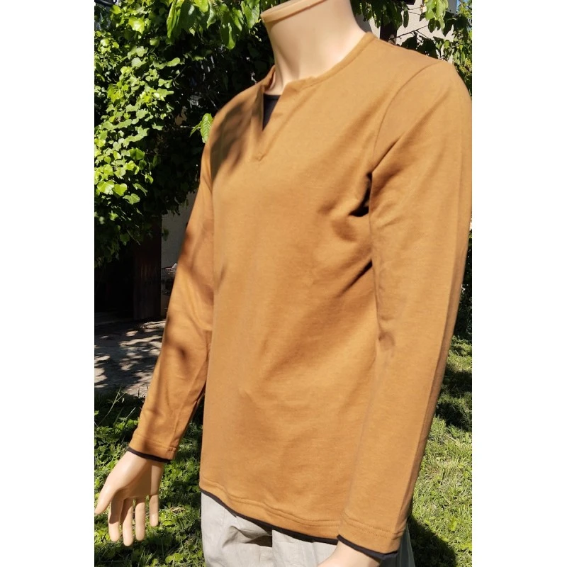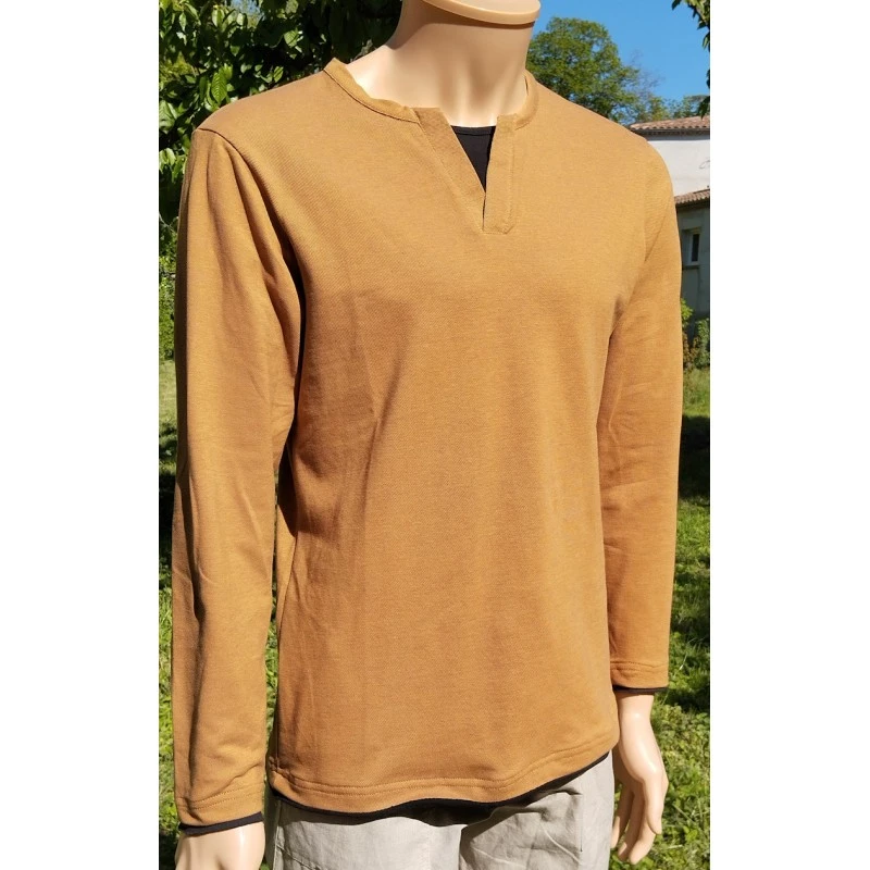 Description : manches longues, col « tunisien », effet supperposition au col, en bas de manche et de tee-shirt