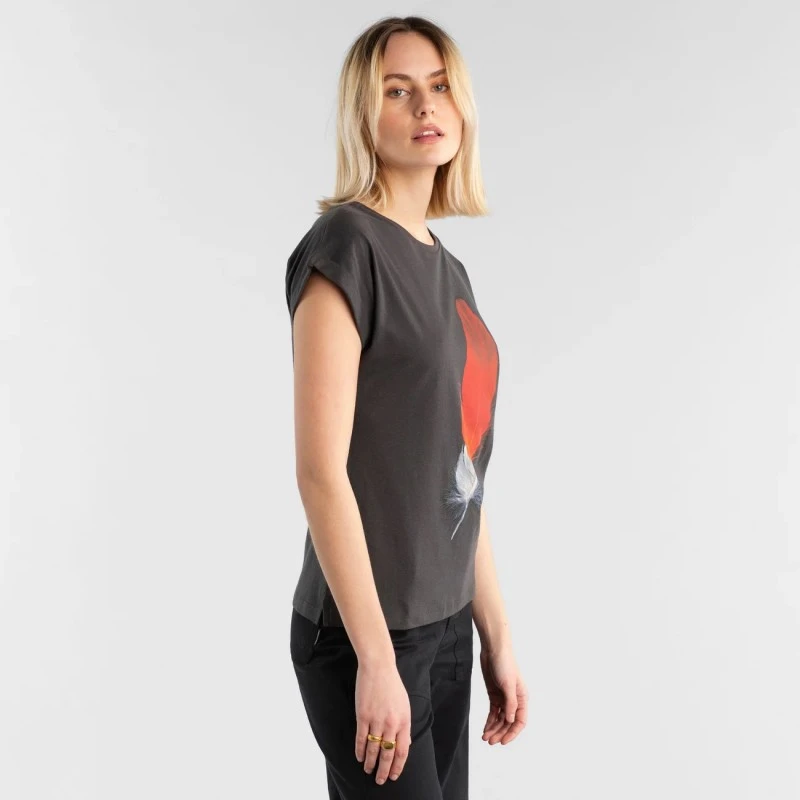 Description : tee-shirt à col rond légÚrement bateau, manches courtes pliées, coupe légÚrement carrée, légÚrement ajustée, fentes sur le cÎté.