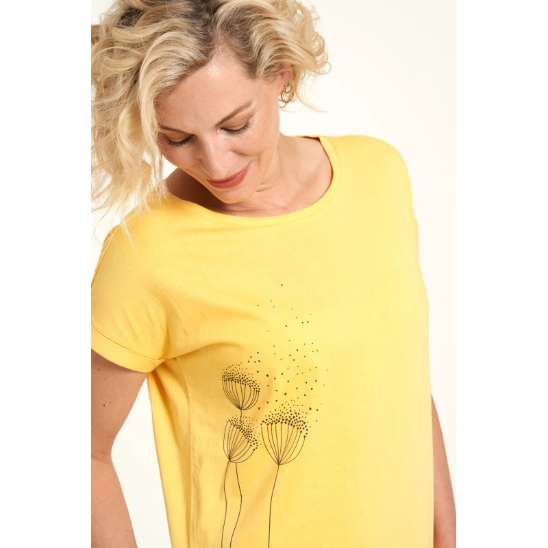 Le mélange de fil flammé dynamique avec une coupe ample, les plis, le col rond large, caractérisent le look de ce tee-shirt.