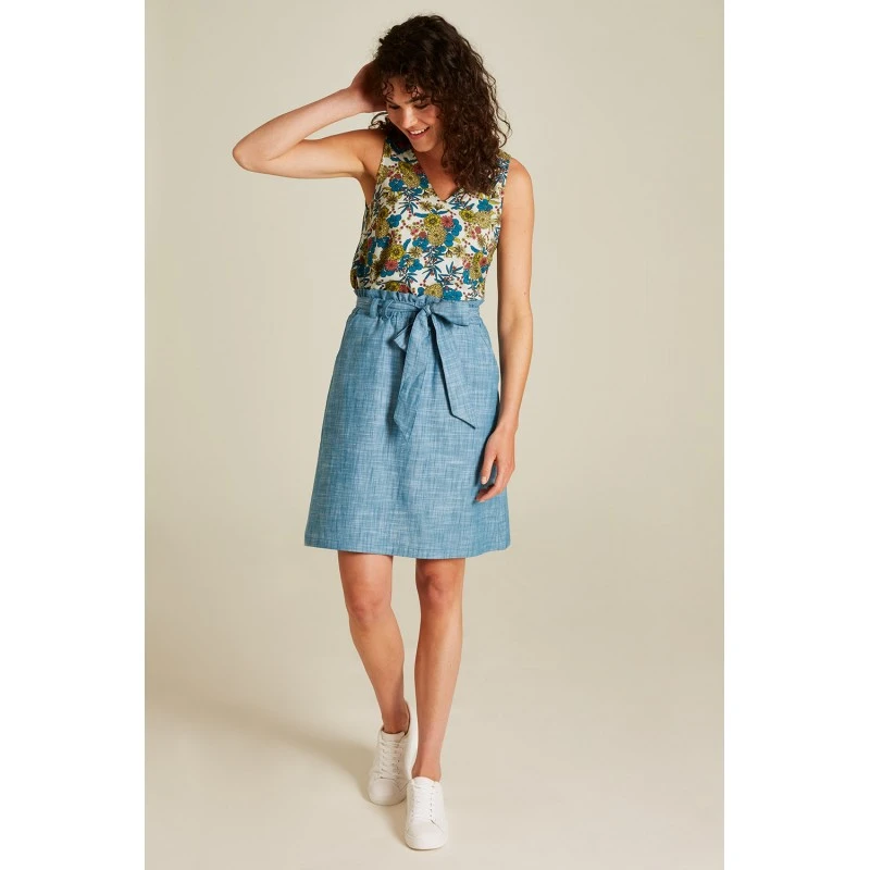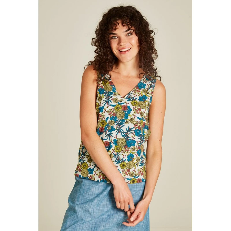 Description : col en V, sans manche, coupe ample, texture de tissu léger