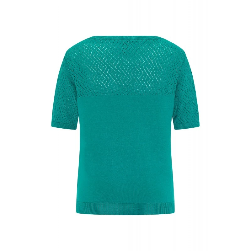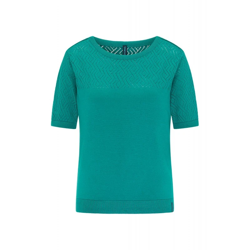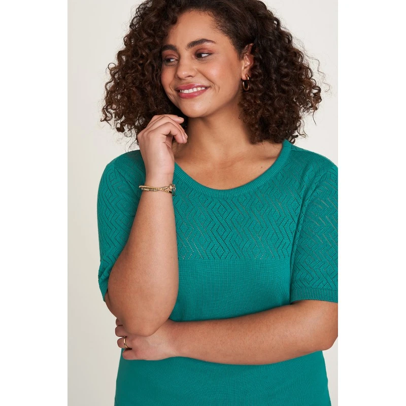 Description : des manches courtes, des bords cÎtelés aux manches et en bas, des mailles tricot torsadées, ample.