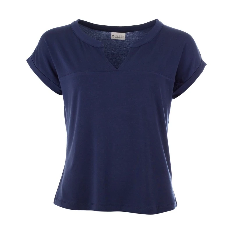 Description : manches courtes, col rond qui se termine en un léger V devant, tissu fluide et confortable en fibres naturelles.