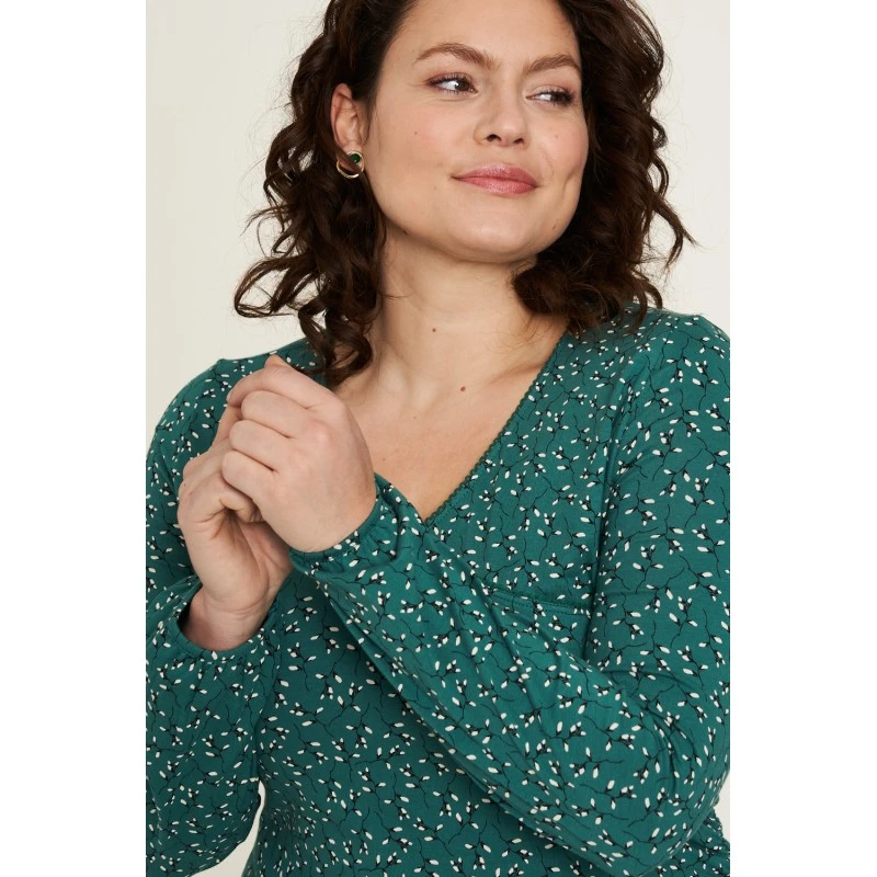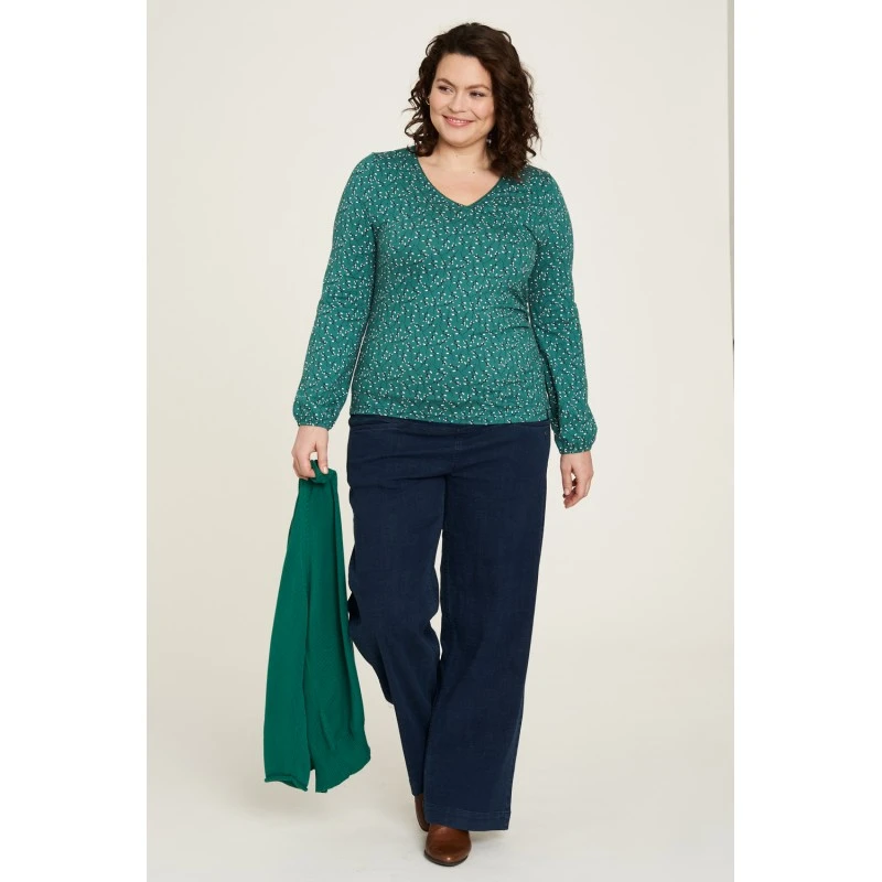 Des manches légÚrement bouffantes, un élégant décolleté en V
