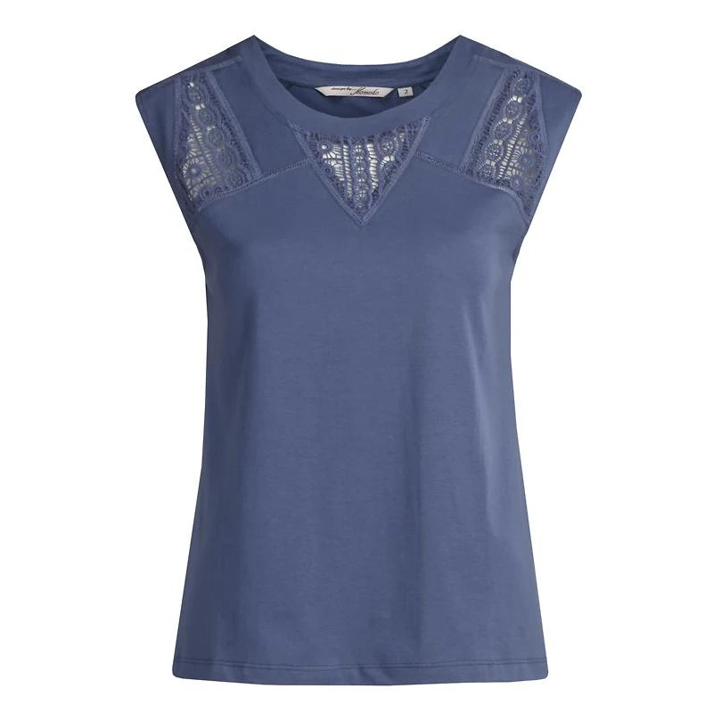 Manches courtes, des ornements ajourés au niveau des épaules et du col.