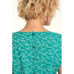 Une coupe droite, des manches courtes, un col rond. Des boutons au dos sur toute la longueur.