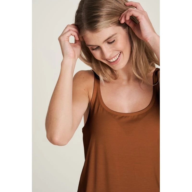 Description : dĂ©bardeur avec fine bretelle (peut servir de sous vĂȘtements), tissu vegan, doux et soyeux, extensible et prĂšs du corps