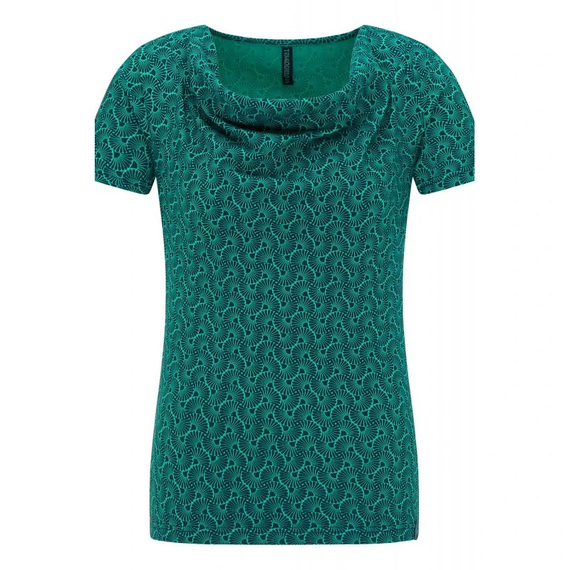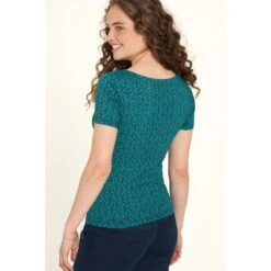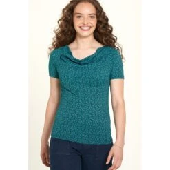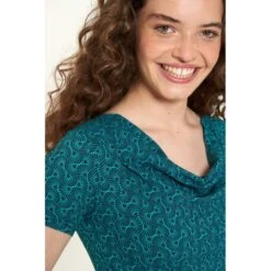 Doux, coupe ajustĂ©e, avec un col bĂ©nitier dans de beaux motifs imprimĂ©s d’Ă©tĂ©, en jersey extensible de coton bio.